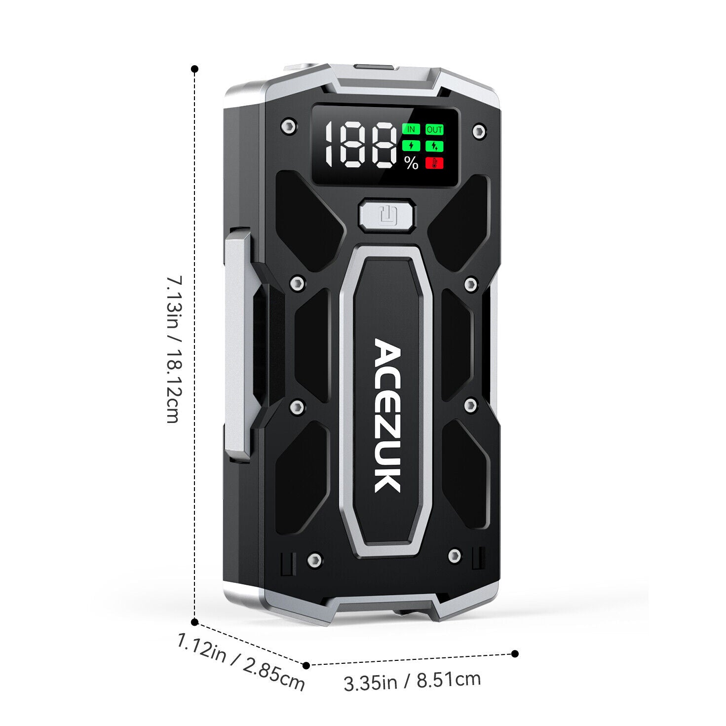Powerful jump start booster – 6000A peak current, suitable for 12V vehicles (gasoline and diesel engines). Starts cars, SUVs, motorcycles, boats, and more, even with a dead battery.