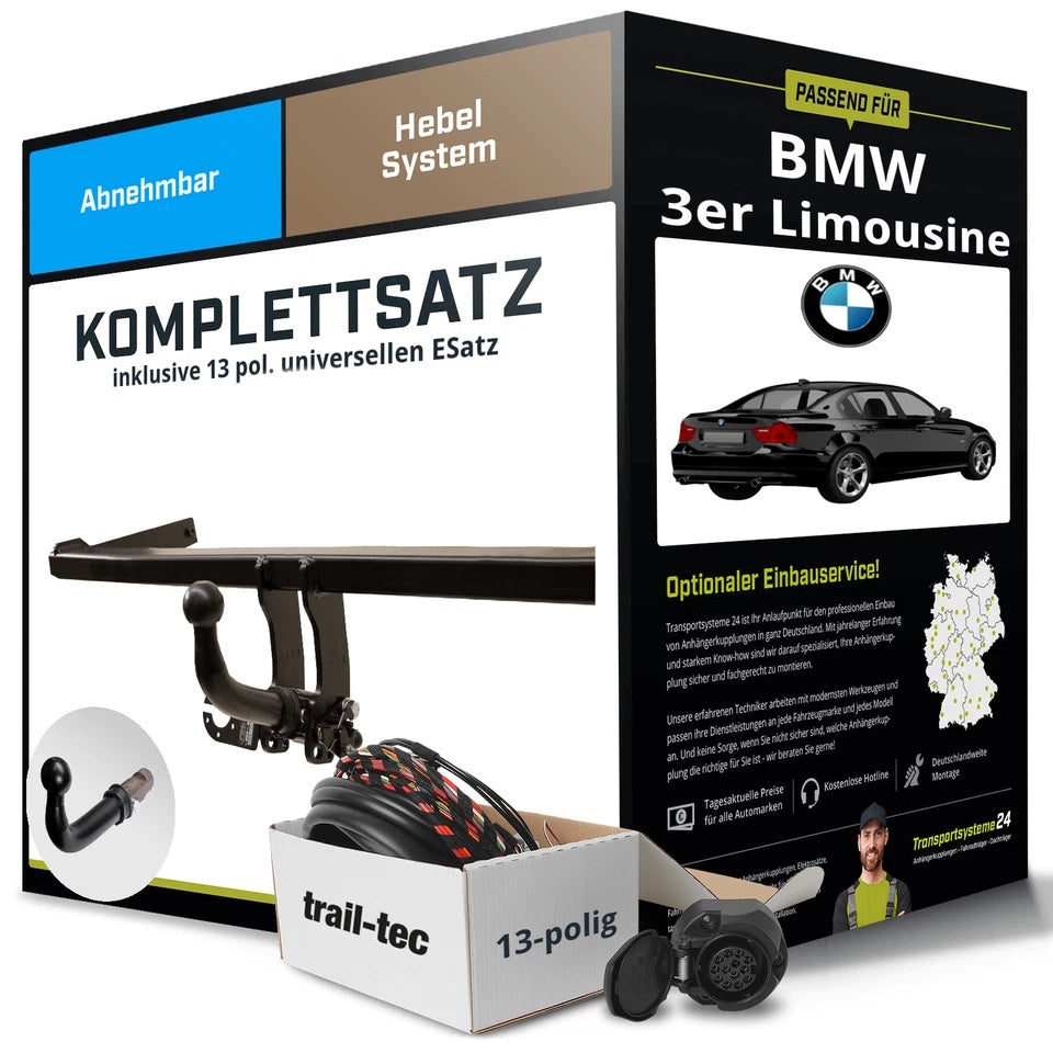BMW 3 Series Sedan E90 detachable tow bar + 13-pin electrical kit (2005–2012)
