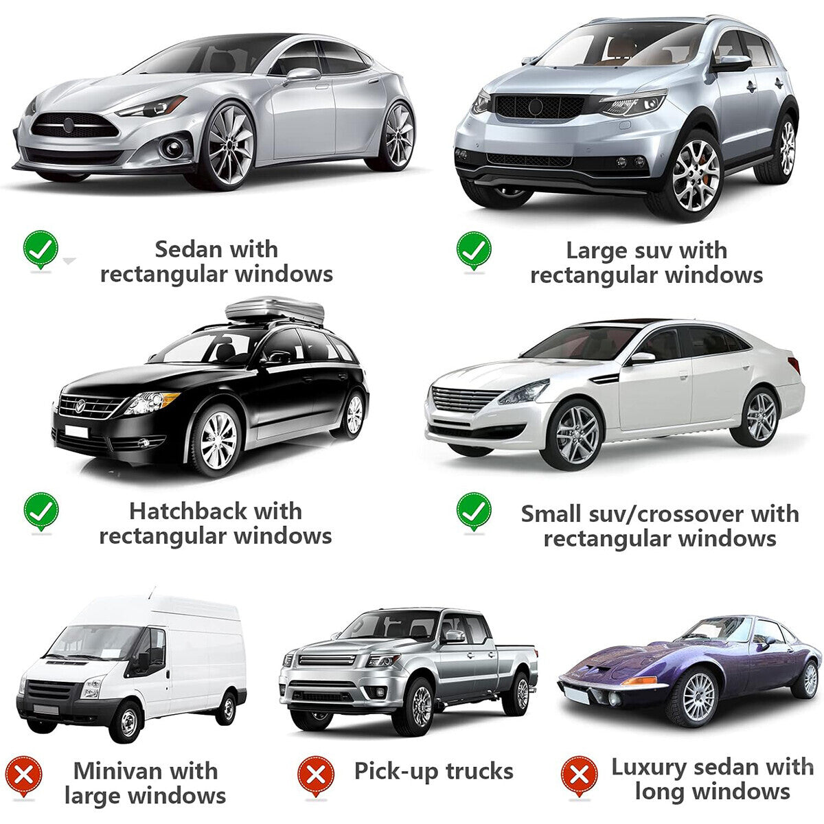 Fits Most Large SUVs: Stretchable car camping window screens fit most large SUVs, Jeeps, and trucks with rectangular windows. Custom-designed car window shades measure 119 x 53 cm (47" x 21").