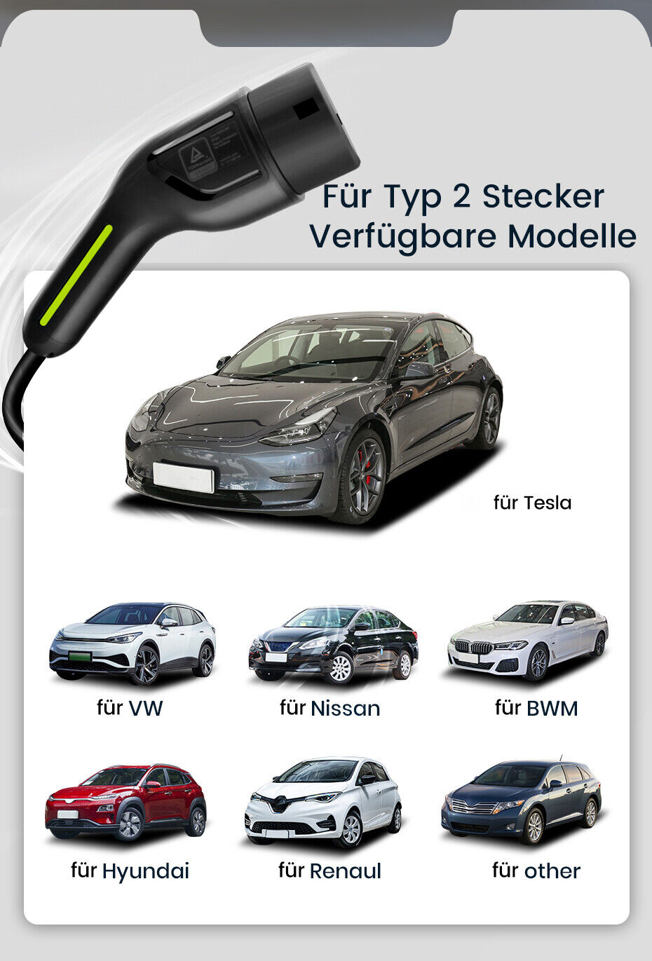 Universal compatibility Suitable for all electric vehicles (EVs) and plug-in hybrids (PHEVs) with Type 2 charging connector.