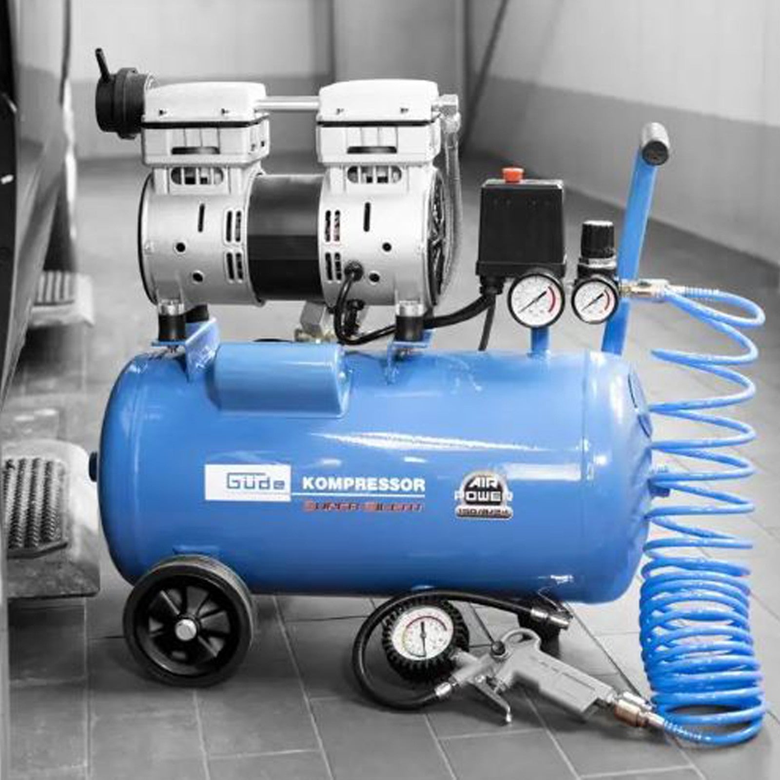 Güde compressed air whisper compressor Airpower 150/8/24 – 8 bar, 24 L, oil-free, 0.75 kW