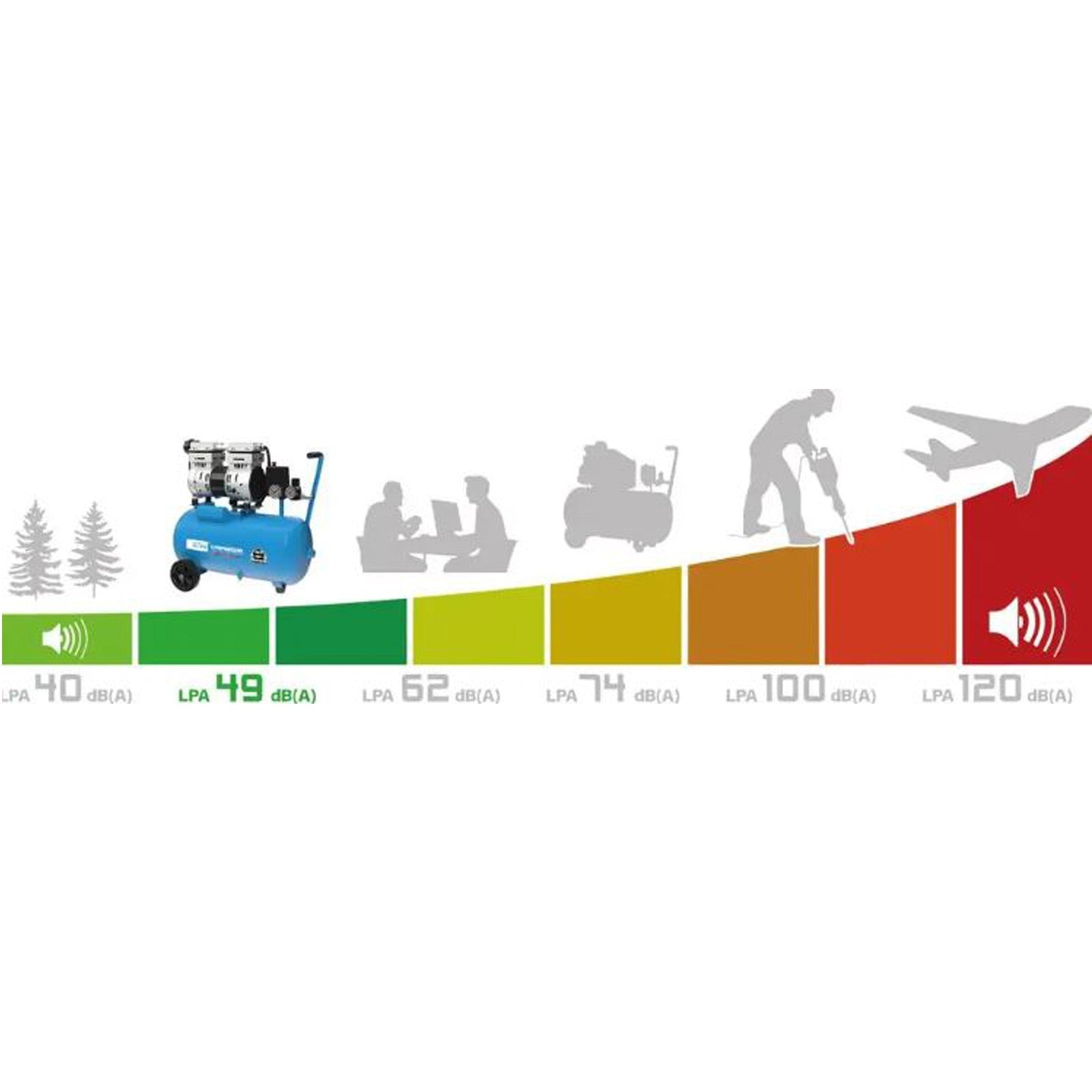 Particularly quiet – only 49 dB(A), significantly quieter than conventional compressors.