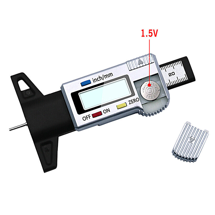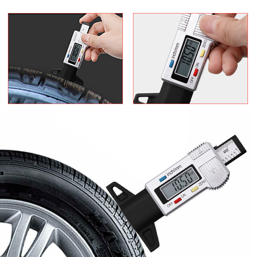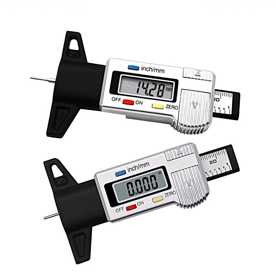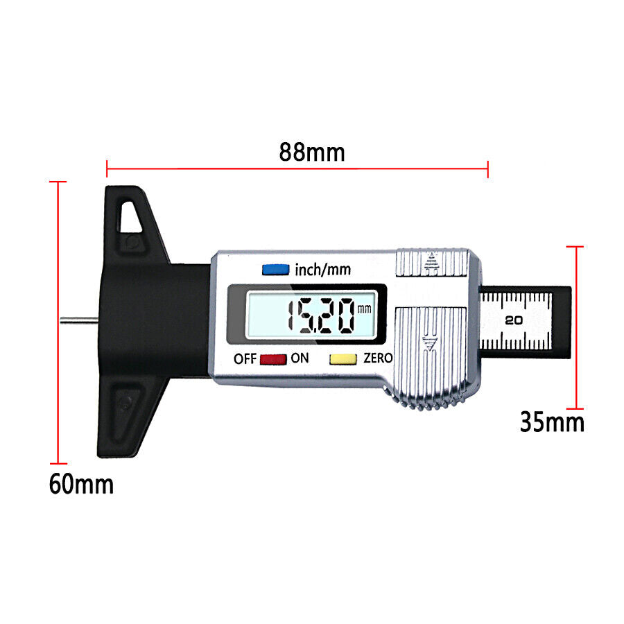 LCD Digital Car Tire Tread Depth Gauge Caliper Silver 25.4