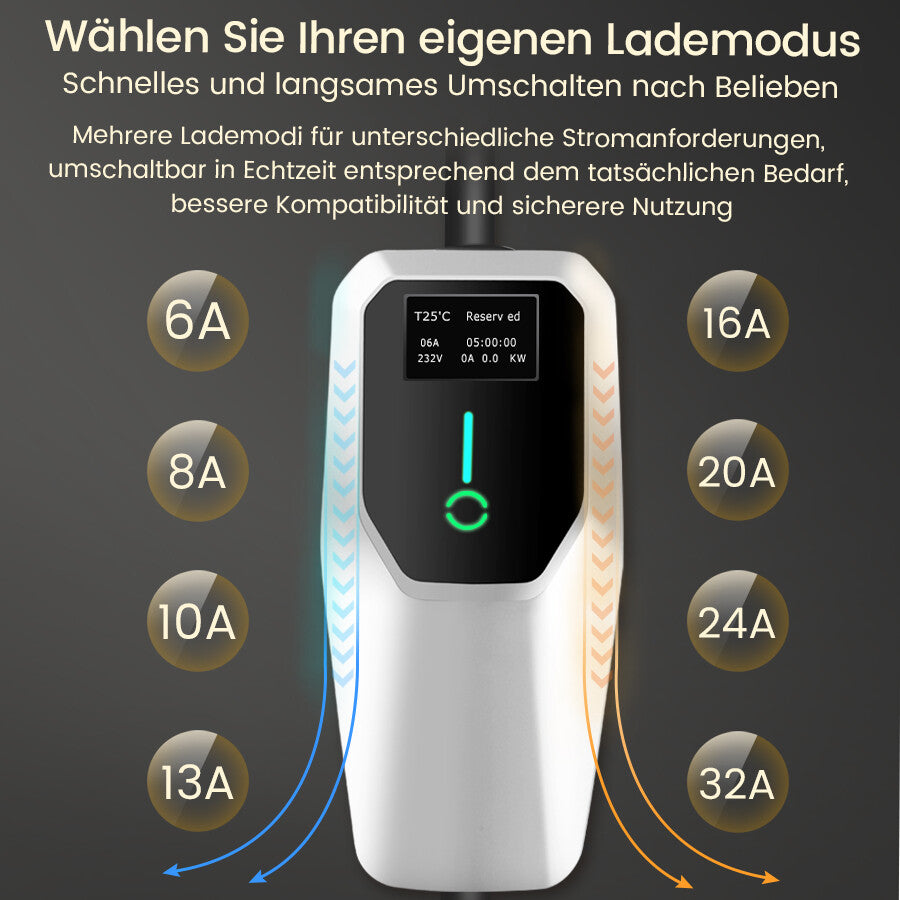 Type 2 32A charging cable for electric cars – 22kW, 3-phase, 5m, LCD display, EV/PHEV