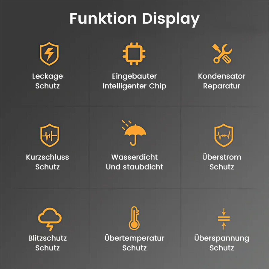 Maximum safety Integrated protection against overcurrent, overvoltage, undervoltage, leakage current (AC30mA+DC6mA) and overheating.