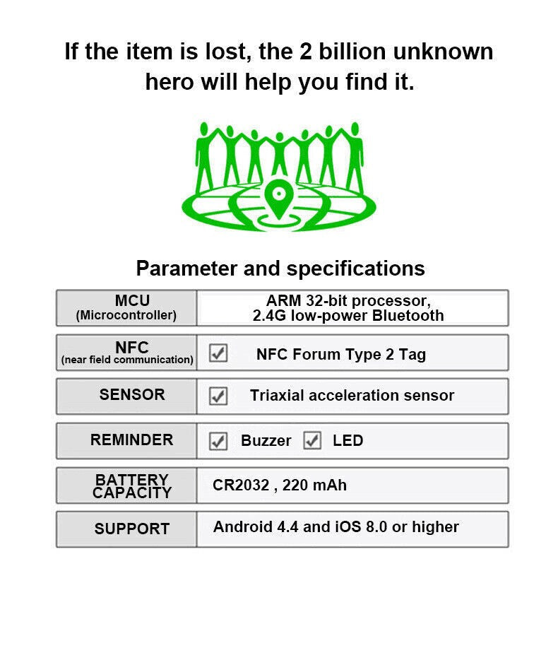 Stromversorgung: Eingebaute CR2032-Knopfzelle, 6 Monate Nutzung und 1 Jahr StandbyGPS Antenne: Eingebaute passive Antenne