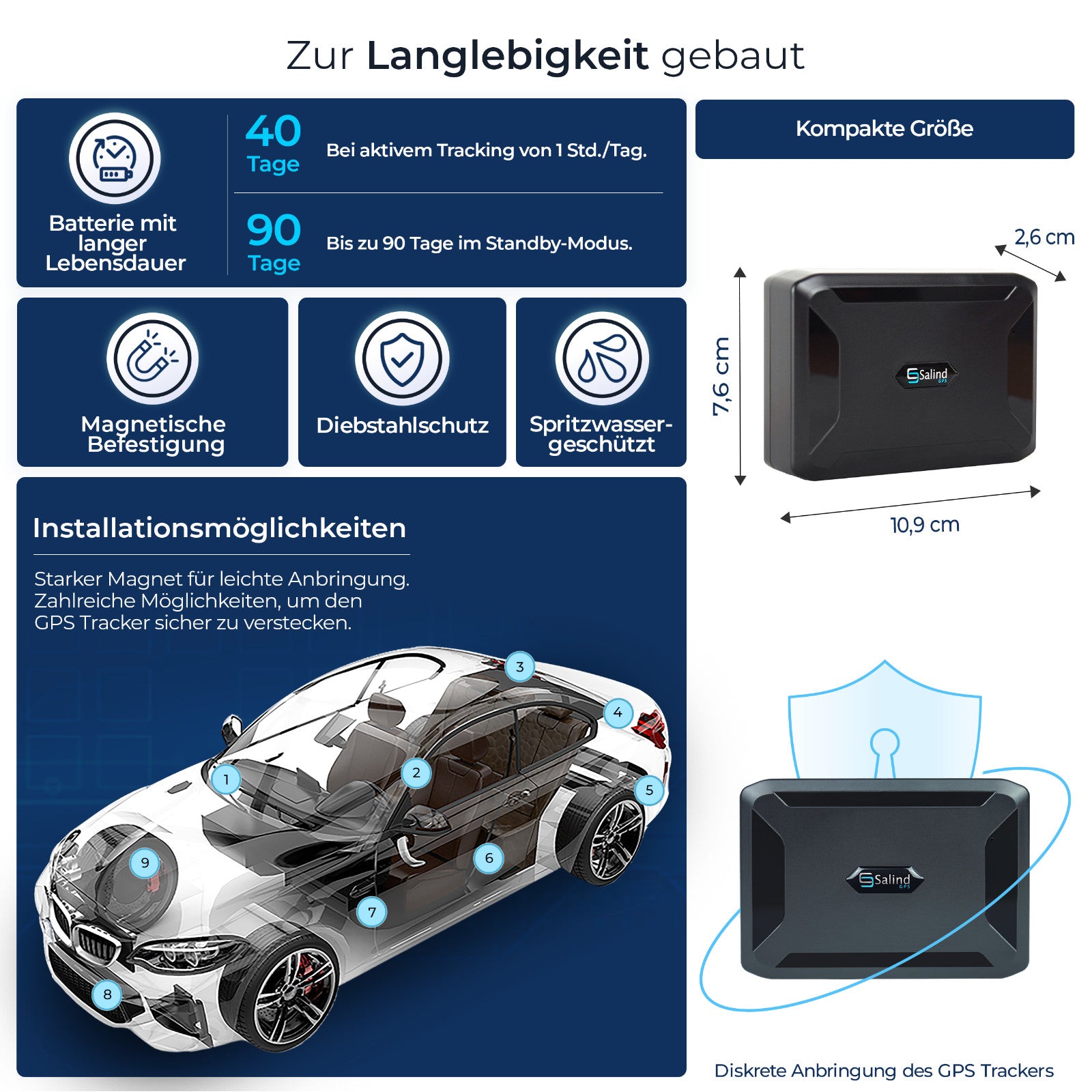 Salind 11 GPS Tracker – Live Ortung mit App & Magnet, 40 Tage Akkulaufzeit