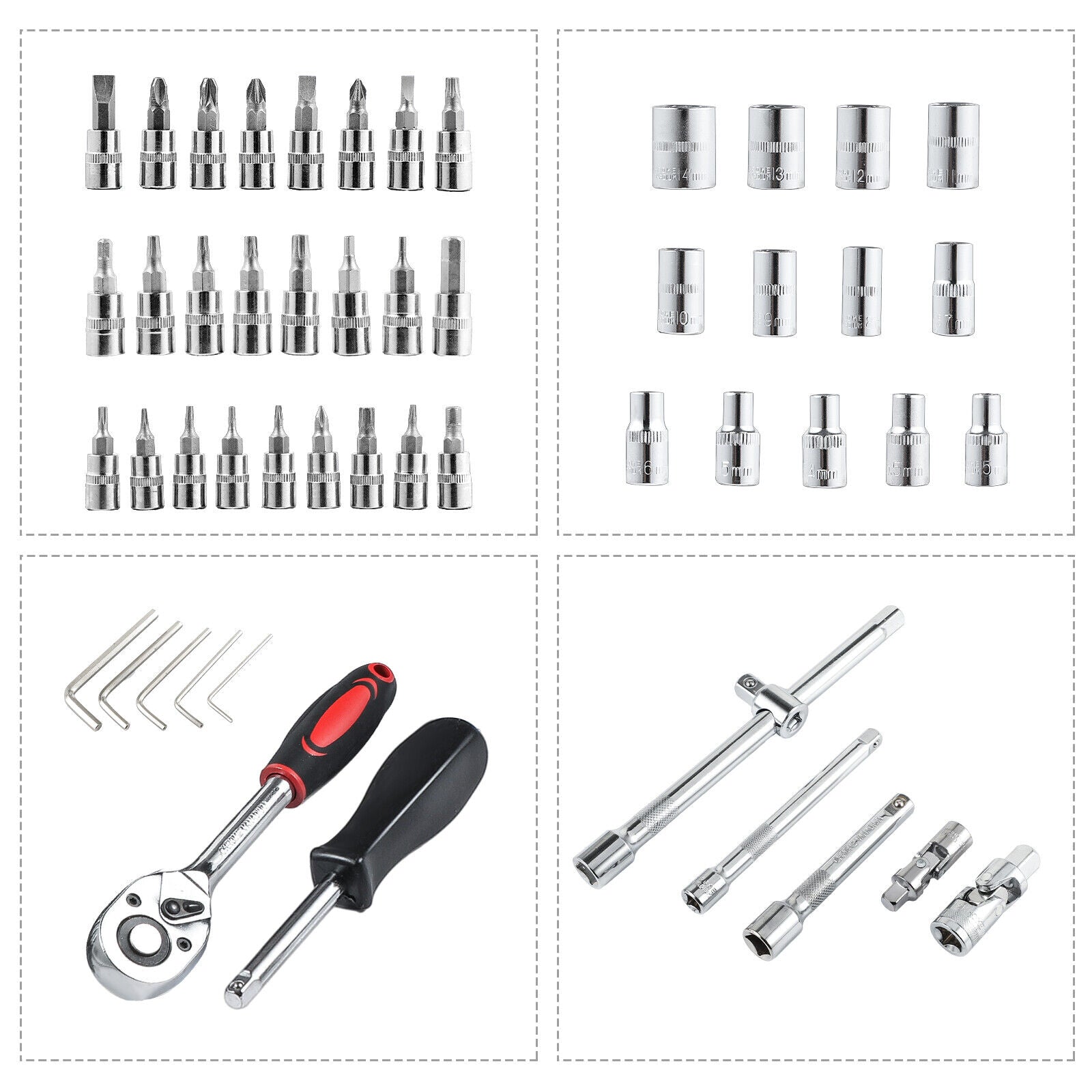 13PCS-1/4" DR. METRIC SOCKETS : 4,4.5,5,5.5,6,7,8,9,10,11,12,13,14MM
