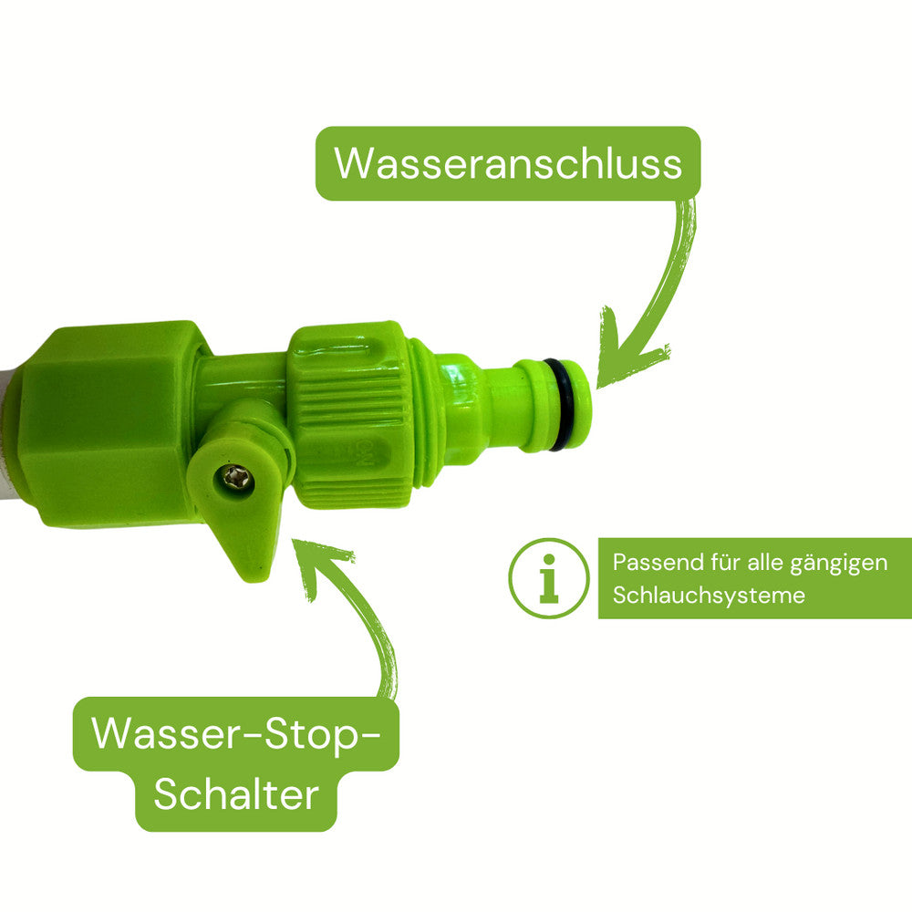 Integrierter Wasseranschluss mit Stop-Schalter für gezielte & effiziente Reinigung